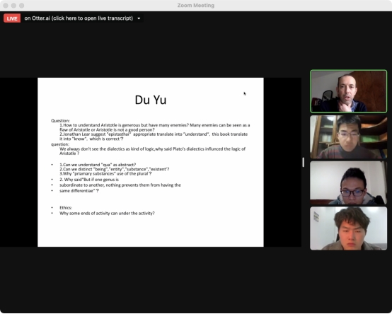 I am very glad to participate in this project.Before the class,we read the reading materials provided by the Cambridge teachers.There are two teachers giving us lessons:Christian Kemie and Mark Perkins,the former is a teacher of ancient Greek philosophy,the latter teacher teaches academic writing in English.Both teachers were very lively and interesting in their lectures and answer our questions patiently.For question outside the lesson,we go to the course management teacher——Kahloshe is also very eager to help us solve our problems.