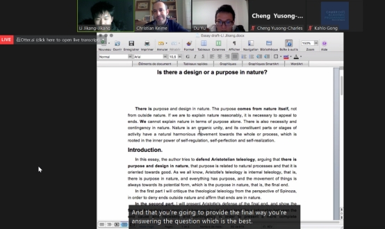 During Cambridge Supervision Programme of more than one month, I gain o lot. I not only read English literature in related fields, but also mastered academic writing skills. It will be of great help to my future research in related fields. I also learned about the tutorial system in Britain and the philosophy training methods of philosophy students.
