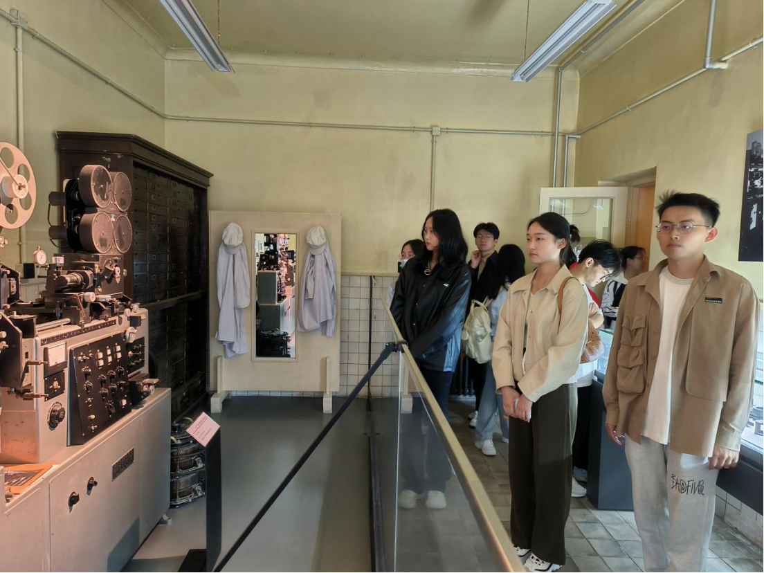走进这座“新中国电影的摇篮”,大家首先来到原长影主办公楼。光影变幻、时光碎片,伴随着历史的厚重一同印入人心。看着一幕幕老电影,那些已经泛黄的画面,在历史的长河里留下璀璨光辉的印记;一个个老片段,那些耳熟能详的故事,在人们的内心中烙下不可磨灭的痕迹。全体师生党员久久凝立,仿若回到新中国成立之初那段风雨沧桑的岁月之中,从第一部木偶片《皇帝梦》、第一部科教片《预防鼠疫》到第一部译制片《普通一兵》,大家深深感受到长影所肩负的党的重托与新中国文化建设的伟大使命。