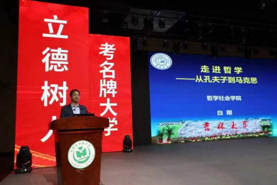 11月15日,白刚院长与教务处处长王庆丰、招生办副主任李莲英、汽车工程学院李建华教授等一行六人来到石家庄卓越中学进行招生宣讲和优秀生源基地授牌,会上白院长为卓越中学的学生做了《走进哲学——从孔夫子到马克思》的科普报告。