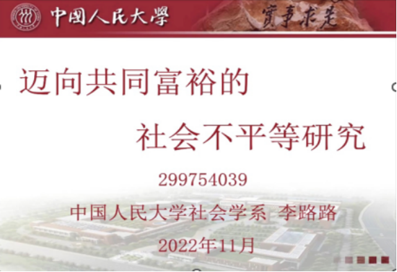 名家系列”讲座第166场在腾讯会议线上举行。主讲人为李路路,中国人民大学“大华讲习教授”,兼任教育部社会学类专业教学指导委员会主任委员。主要研究方向为社会分层与社会流动、组织研究、社会变迁与社会现代化。讲座的题目为“迈向共同富裕的社会不平等研究”。