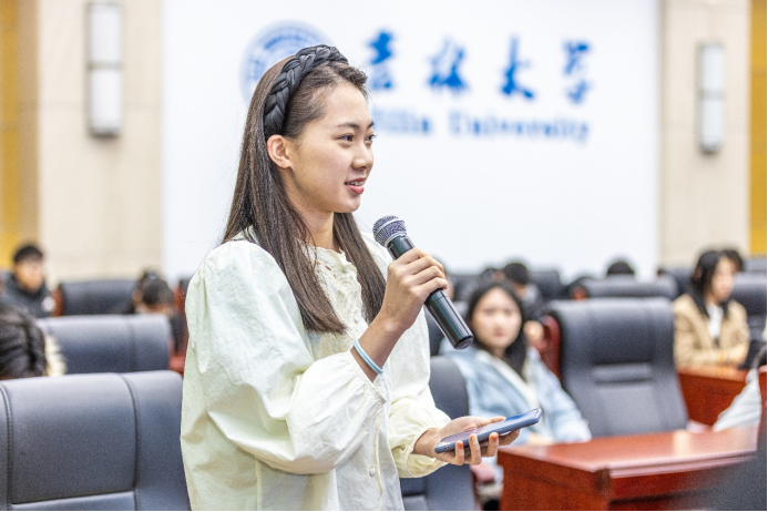 现场提问环节,同学们就辩题中的相关内容进行提问,与正反方进行了交流探讨。