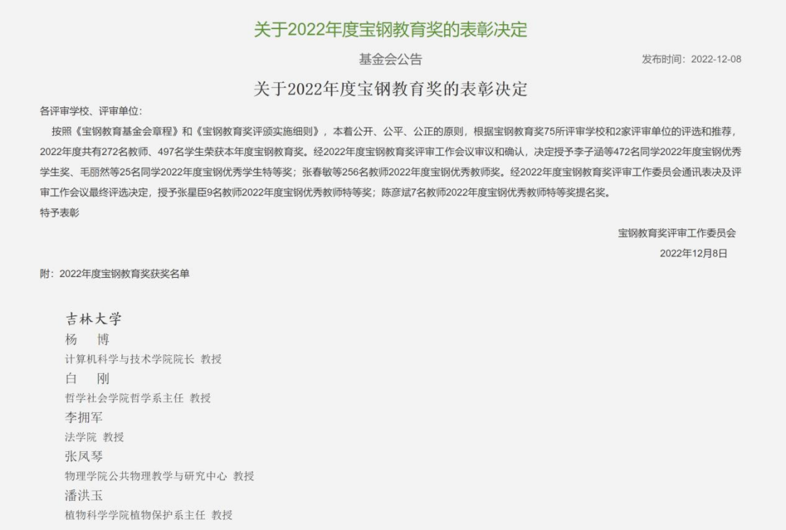 2022年度宝钢优秀教师奖名单。其中,91国产 哲学系主任白刚教授荣获宝钢优秀教师奖。