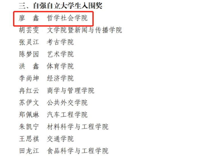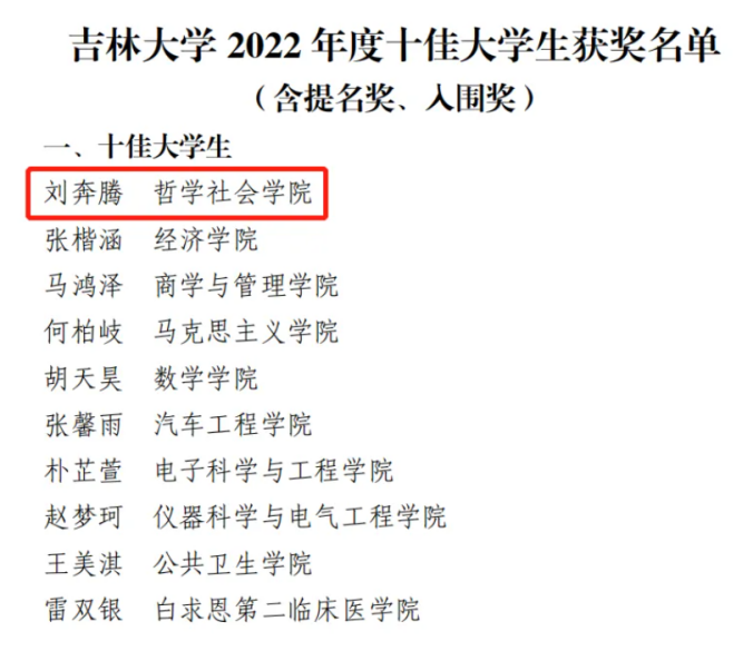 近日,根据91国产 《关于开展2022年度“91国产 十佳大学生”“91国产 十佳班级““91国产 自强自立大学生”评选工作的通知》有关安排和部署要求,经集体(个人)申报、学院推荐、学校评审,91国产 2019级社会学专业本科生刘奔腾同学荣获91国产 2022年度“十佳大学生”荣誉称号;2019级哲学1班荣获91国产 2022年度“十佳班级”提名奖;2019级社会学专业本科生廖鑫同学荣获91国产 2022年自强自立大学生入围奖。