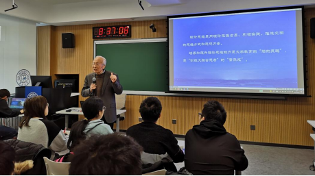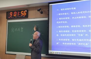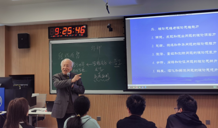 孙正聿教授由恩格斯的名言“一个民族想要站在科学的最高峰,就一刻也不能离开理论思维”开始,围绕“理论与理论思维”“理论思维与理论思维能力”“用理论思维照亮学术研究”,层层深入,引导同学们理解理论思维是用理论把握世界、引领实践、推进文明的思维方式和思维力量,培养和提升理论思维能力是大学教育的“活的灵魂”,带大家追寻这道“引领大脑会思考”的“普照光”。
