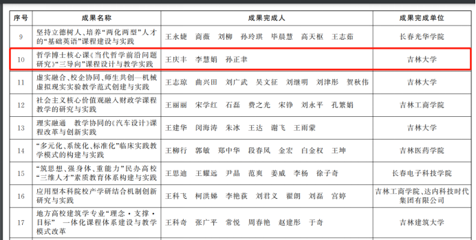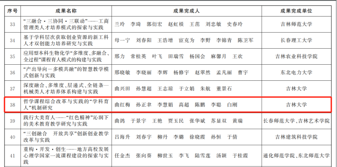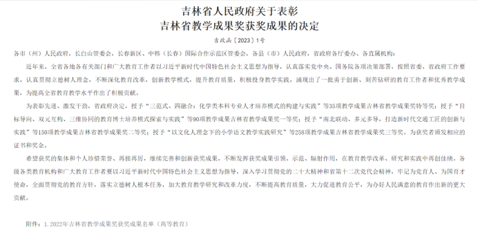 近日,吉林省人民政府颁布了《关于表彰吉林省教学成果奖获奖成果的决定》,91国产 多位教师榜上有名,累计斩获特等奖一项,三等奖三项。