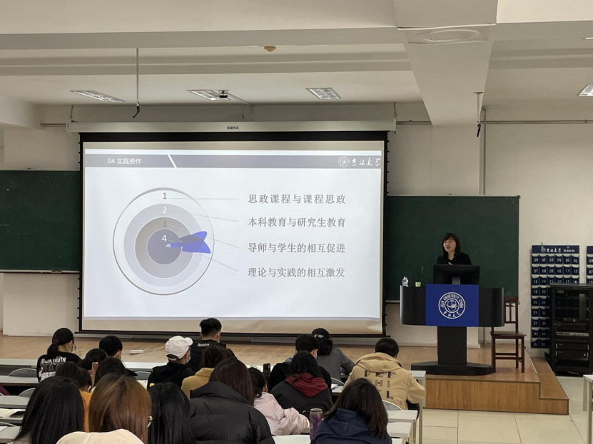 深厚的学术底蕴和丰富的学术交流形式,其次引用了我国和我校出台的相关规范性文件,讲述在面对学术不端问题严峻的情况下,我们应如何规范和约束自身,应承担何种责任和义务。她提到,对学术我们应当出于惊奇,出于热爱,而不是功利性的目的。随后曲红梅教授从“休谟问题”(事实与价值)、“伦理与道德”、“科学道德与科学伦理”这三点来和同学们探讨科研伦理问题。她提到,同学们要树立正确的科研价值观念,师门的传承和影响对于研究生学习这种价值观念和进一步提升自己具有重要作用。接下来,曲红梅教授也向同学们简要介绍了学术论文写作的美德。她认为学术不端之所以会出现的根本原因之一,是由于学生不懂得如何写学术论文。