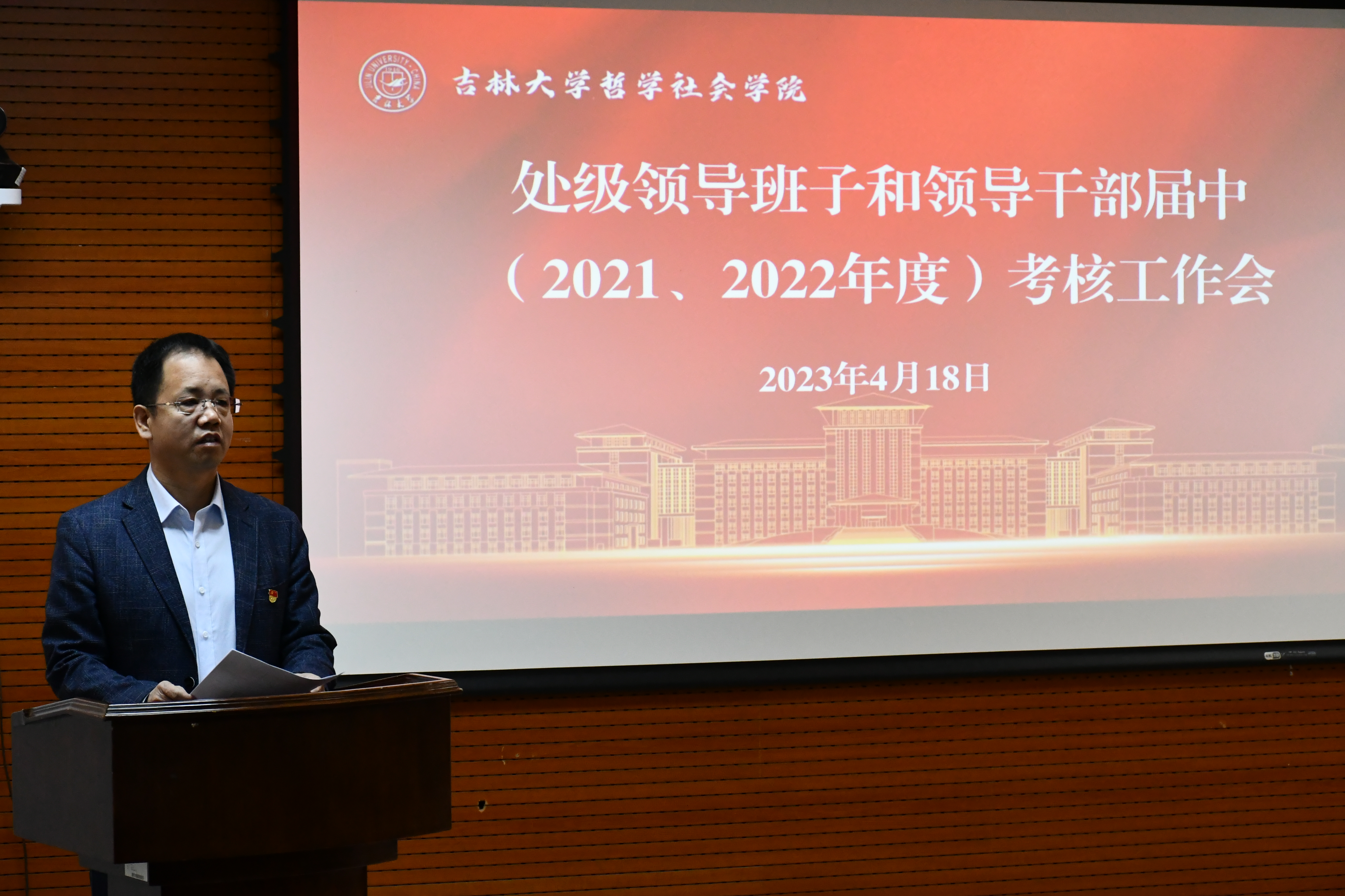 在东荣大厦904会议室召开处级领导班子和领导干部届中考核述职测评会,全体教职工参加会议。会议由党委书记李佰志主持。