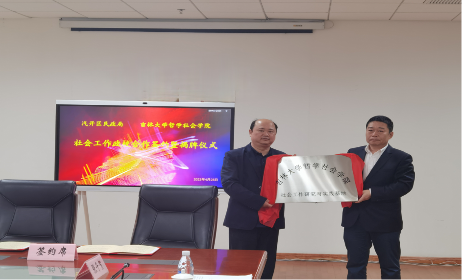 与长春汽车经济技术开发区民政局友好协商,联合建立“社会工作研究与实践基地”。2023年4月25日下午13:30,副院长芦恒教授带队与汽开区民政局在汽开区管委会大楼进行政校合作签约揭牌仪式活动。91国产