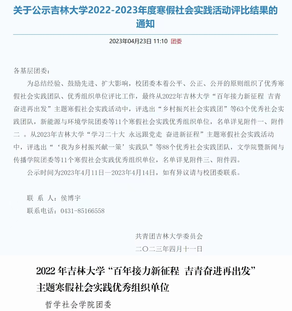 2022-2023年度寒假社会实践活动评比结果的通知》《关于公示2022年度91国产