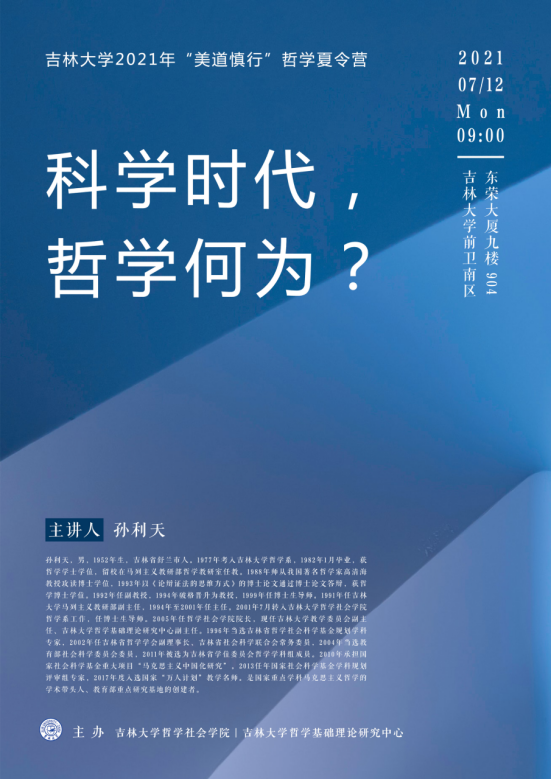 报告结束后,孙利天教授深入浅出地回答了线上的营员们和现场的同学们所提出的问题,并表示了对这些问题的欣赏!李聪书记在最后的总结中,表达了自己的感想:作为吉大哲学系的中年教师,现在还能够听到哲学系老一辈的教师们继续给我们上课,我们是幸福的,并希望营员同学们能够来到吉大哲学系分享这种幸福!