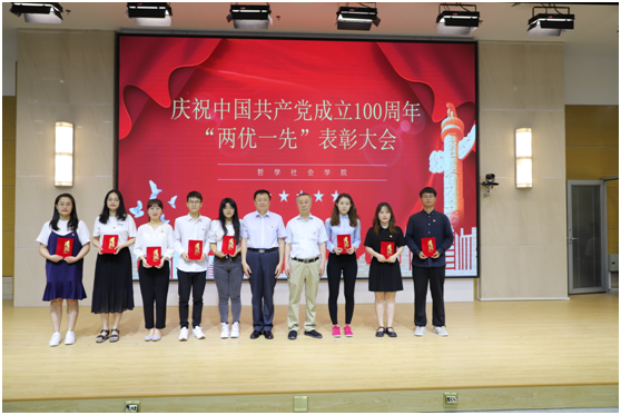 校务委员会副主任邴正同志、吉林省优秀共产党员标兵获得者孙利天同志为白刚等20名优秀共产党员颁发荣誉证书,学院党委委员林兵同志为刘畅等8名优秀党务工作者颁发荣誉证书,学院党委委员、院长田毅鹏同志为哲学系教工党支部等6个先进党支部颁发奖牌。