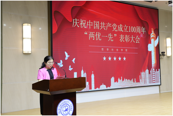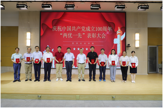 在东荣会议中心隆重举行庆祝中国共产党成立100周年“两优一先”表彰大会。学院党委委员、纪委委员、全体教职工党员和部分学生党员代表参加会议,会议由学院党委副书记兼副院长刘培强主持。