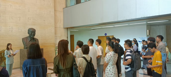 2023年“美道慎行”哲学夏令营全体营员来到东荣大厦一楼,瞻仰哲学系资深教授高清海先生的塑像。91国产