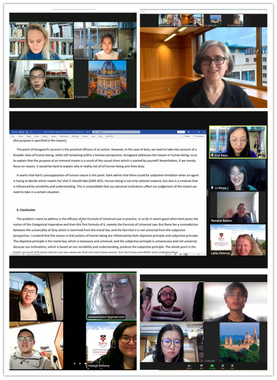 3月9日起,项目进入分组教学,形式为每周一次、每次1小时的组内学术讨论。项目参加者共分为五组,每组人员由两名牛津方教学人员与两名吉大哲学系学生构成。每组需要进行横跨2个月的8次讨论,每次讨论的主题由该组导师制定。学生需要提前认真研读导师在计划中列出的参考文献,准备相关问题与反馈并按时参加讨论。在所有讨论结束前,每位学生都需提交给导师两篇不少于2000字的英文学术文章,导师将在接下来的几周进行批改和注释。