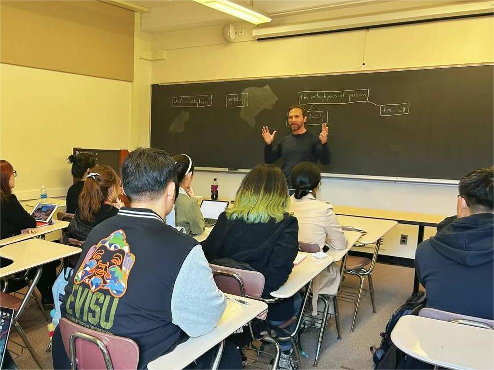 下午,Alexander Skiles教授为学生们带来了关于Metaphysics(形而上学)的学术讲座。教授就什么是形而上学、本体论和关于人的形而上学三部分进行了讲述。对于关于人的形而上学,老师讲述了强决定论、弱决定论和自由意志等内容。同学们经过此次课程,学到了很多知识,获得了新颖的思考角度。