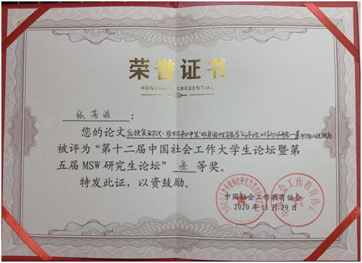 2018级社会工作专业本科生张若晗荣获全国三等奖。