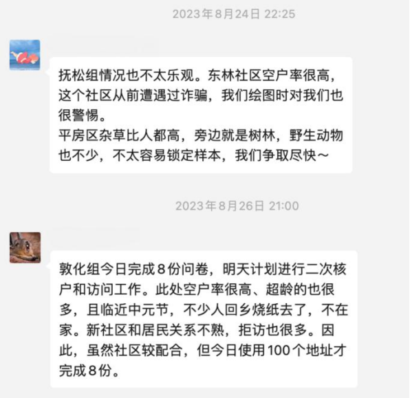 在此过程中,访员们虽倍感压力与挫败,但始终怀揣百折不挠之心,在一次次的尝试中理解、接纳村/居民的警惕,寻求、争取受访者的支持,品味、感激受访者的真情。