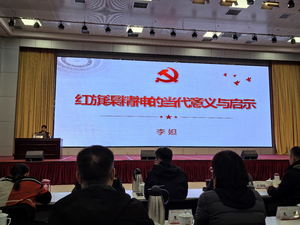 随后,红旗渠干部学院原院长李妲老师以《红旗渠精神的当代意义与启示》为题,为学员们进行专题授课。一幅幅铭记历史的珍贵照片,隐含着触动内心的感人故事;一组组凝聚心血汗水的数字,铭刻着当地人民的艰辛征程。李老师从红旗渠修建的历史背景、红旗渠精神的当代意义、红旗渠精神的启示三个方面,为学员们论述了红旗渠精神是党的初心和使命的集中体现、是中华民族精神的重要组成部分、是中国人民奋斗圆梦的生动写照,深入分析了坚定的理想信念是我们党奋勇向前的力量源泉,以人民为中心是我们党执政的最大底气,勇于担当是我们党带领人民攻坚克难的关键因素等历史启示。