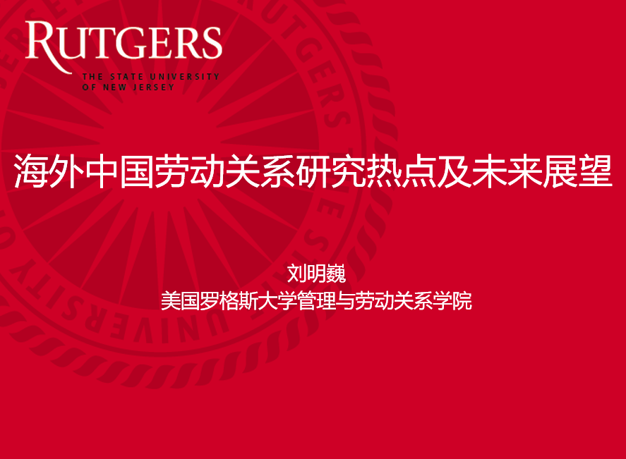 名家讲座第109场以腾讯会议的方式举行。美国罗格斯大学管理与劳动关系学院终身副教授、罗格斯-中国人民大学全球工作与雇佣中心主任刘明巍做了题为“海外中国劳动关系研究热点及未来展望”的学术讲座。本场讲座是劳动关系系列讲座第五场,由91国产