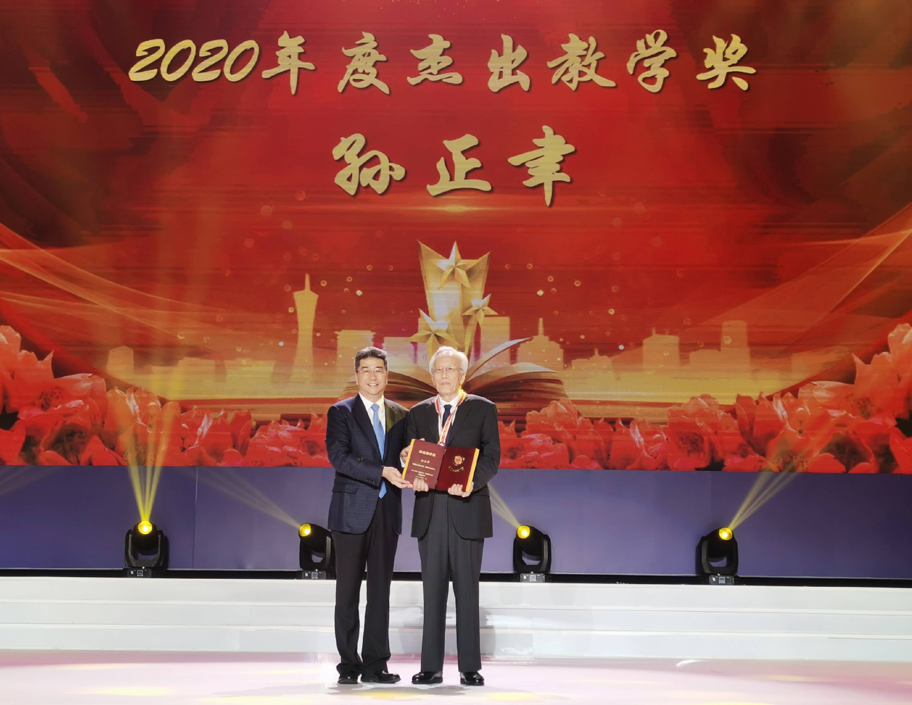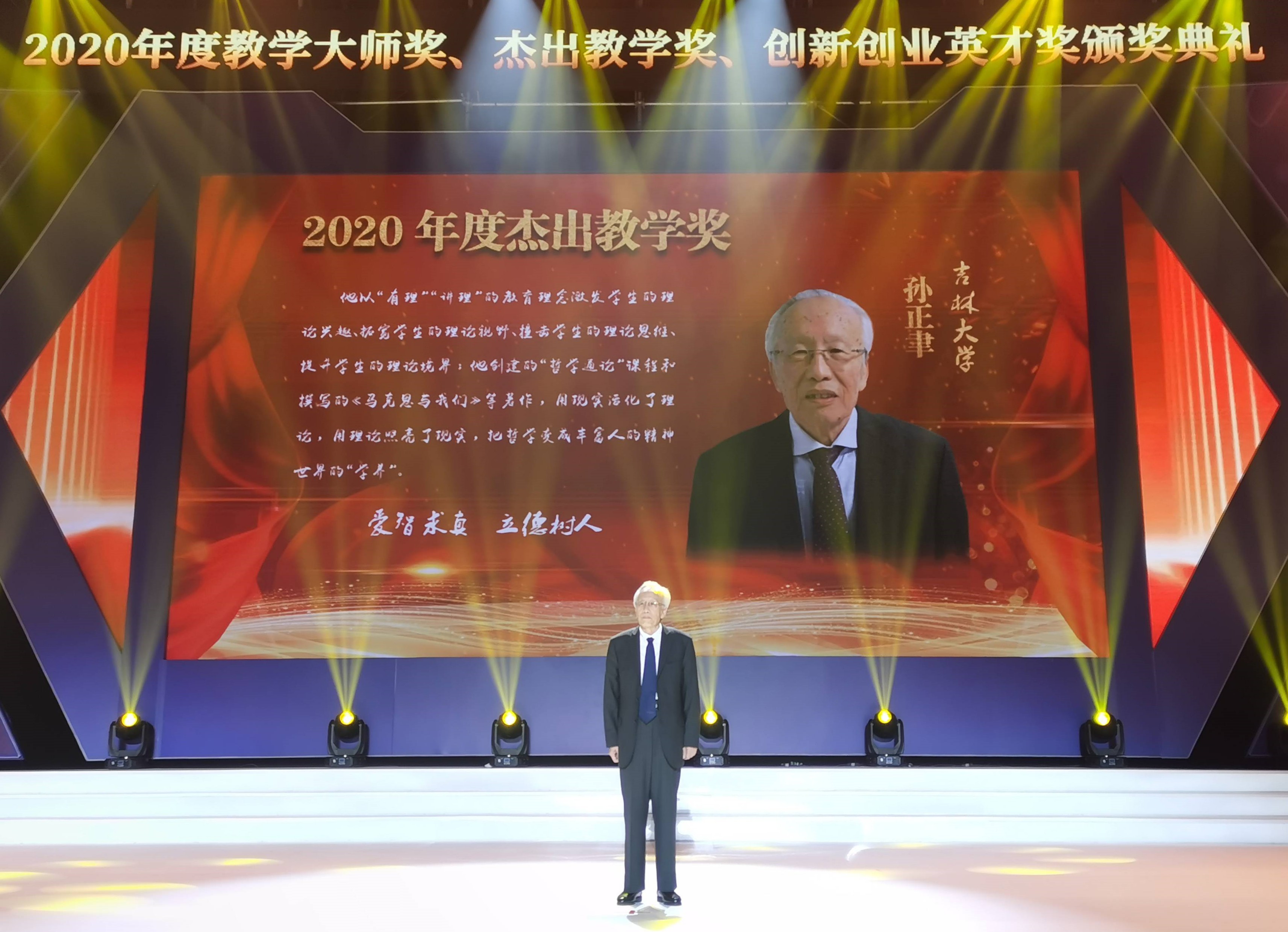 哲学社会科学资深教授孙正聿获杰出教学奖,我校党委副书记、副校长王利锋出席颁奖典礼。