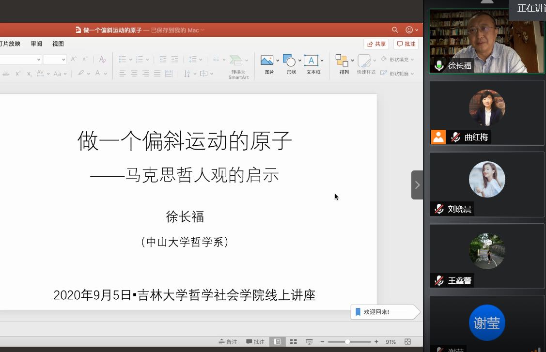 学术教育提升工程”第一讲以腾讯会议的形式进行。本次讲座的主讲学者为中山大学徐长福教授。徐长福教授的讲座题目是《做一个偏斜运动的原子——马克思哲人观的启示》。