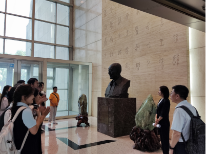 2024年第七届“美道慎行”哲学夏令营的营员们来到东荣大厦一楼,集体瞻仰了哲学系资深教授高清海先生的塑像。91国产