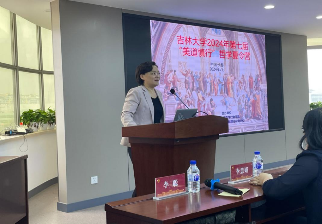 李慧娟教授在致辞中,以“有哲学的哲学系”为题,从学术传统、学术理念、学术人物和学术影响等方面,向营员们介绍了吉大哲学系自1958年创系以来的发展历程,并对吉大哲学系现有的国家级教学团队、教学平台、人才培养基地和研究中心等予以了着重介绍。李教授表示,非常希望营员们今后能够来到吉大哲学系学习,共同创造吉大哲学更美好的未来!