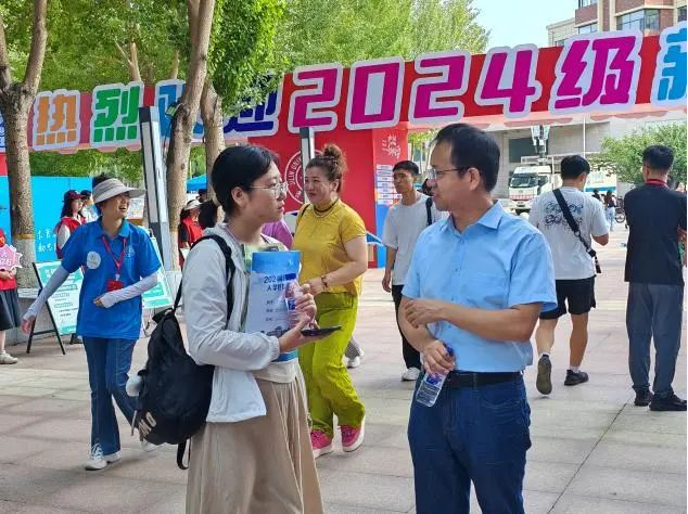 8月23日中午,白刚院长、张晓萌书记来到迎新工作场地检查学院迎新工作,看望慰问报到新生与工作人员。