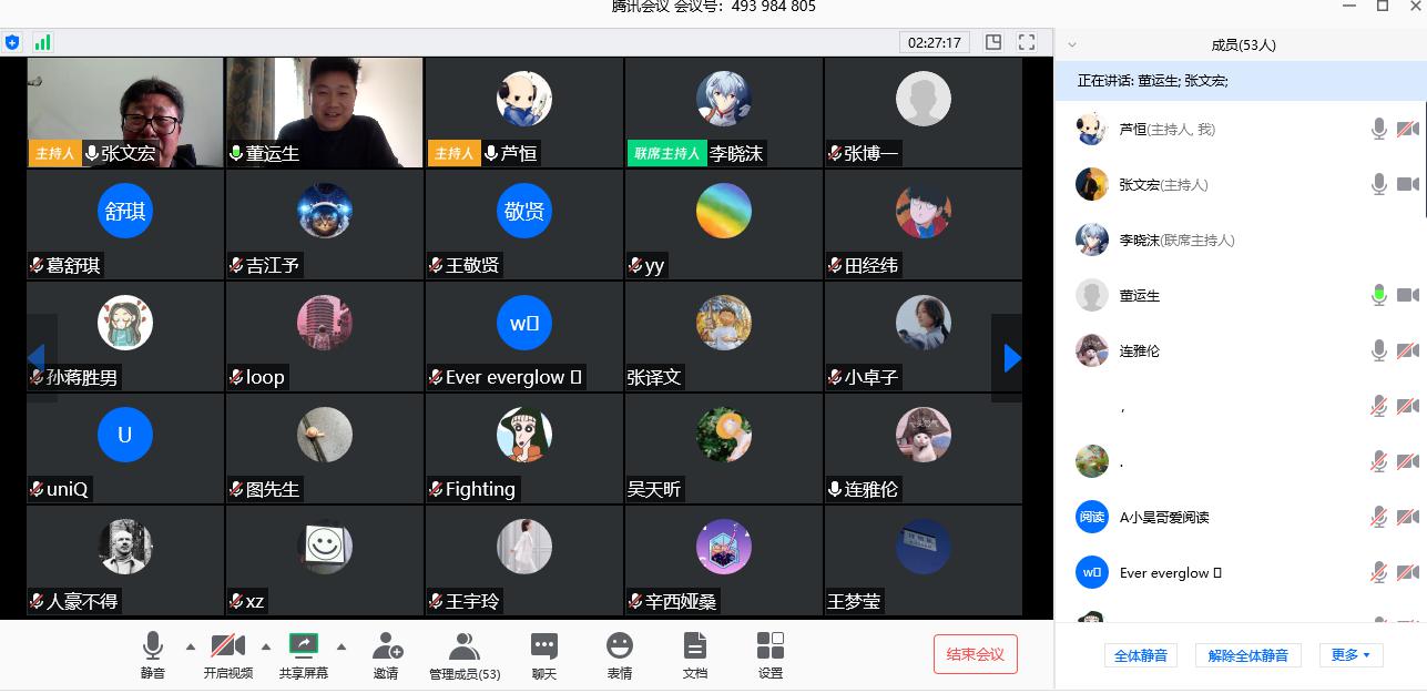 最后,芦恒教授为本场讲座进行总结,他表示,整场讲座以网络在线的方式进行,形式新颖,师生参与度较高;同时,张文宏教授讲述内容详实、深入先出,体现出张教授在社会网络研究中扎实的理论功底,使在场师生对疫情期间的社会治理问题有了更加清晰和深刻的认识。