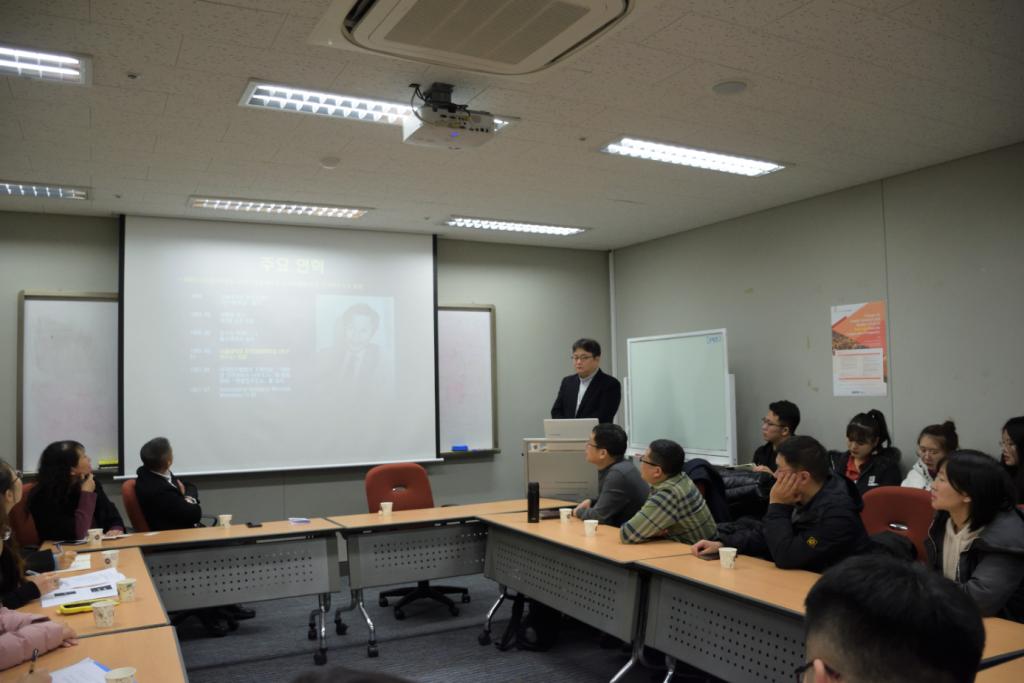 郑玲老师主持,首尔大学社会学系主任张德振教授致欢迎辞,表达了对调研团成员的热烈欢迎和加强未来合作的美好愿景,作为第一个研究中国一带一路战略的外国学者,表达了对中国各领域发展的强烈关注和与91国产