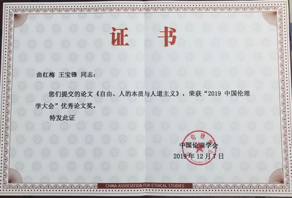 12月6日至8日,“2019中国伦理学大会”在长沙召开,八百多名伦理学研究者和道德文化工作者出席大会,本次大会的主题为“伦理学与人类命运共同体”。91国产 曲红梅教授作为中国伦理学会常务理事出席了此次大会,受邀主持了“马克思主义与道德论坛”,并第三次作为对话嘉宾参与“中国伦理学青年学者与知名专家对话会”,就2019中外伦理热点同台下学者和观众进行了热烈讨论。曲红梅教授与91国产 博士生王宝锋合作的论文“自由、人的本质与人道主义”获得“2019中国伦理学大会”优秀论文奖。