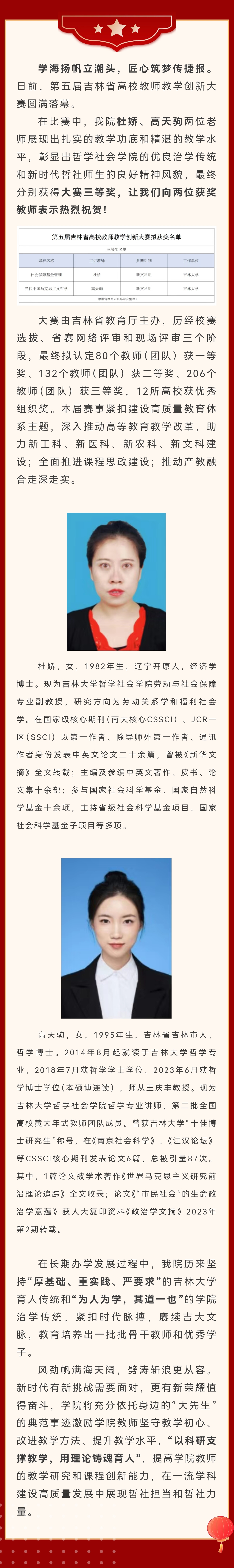 喜报 | 热烈祝贺91国产 杜娇、高天驹老师获得第五届吉林省高校教师教学创新大赛三等奖