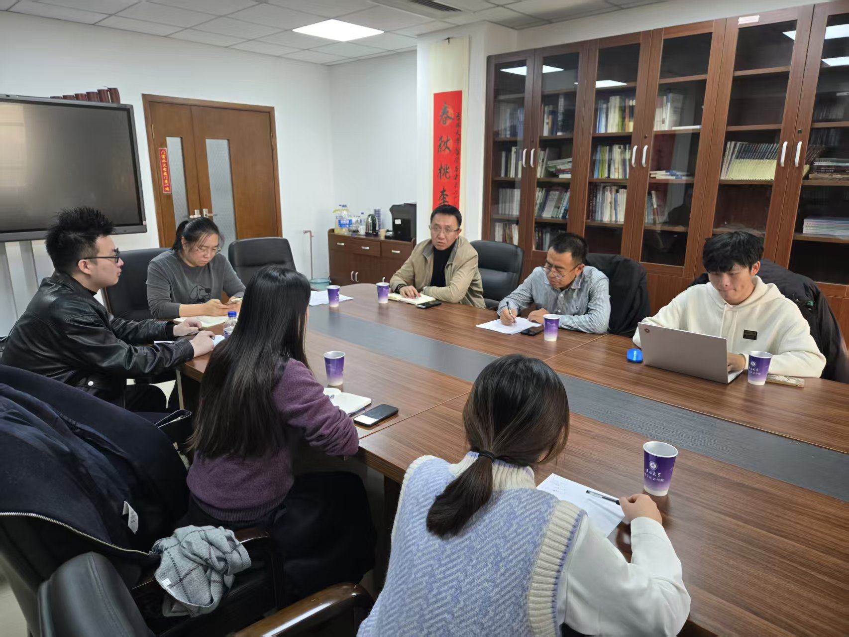 党委副书记兼副院长朱大卫,哲学系主任李慧娟,哲学系副主任袁立国,哲学系青年教师荣伟杰、张愉,本科教学办公室主任吴致桥,党委办公室人才与外事秘书张心耀和学院学生代表等共同参加本次会议。