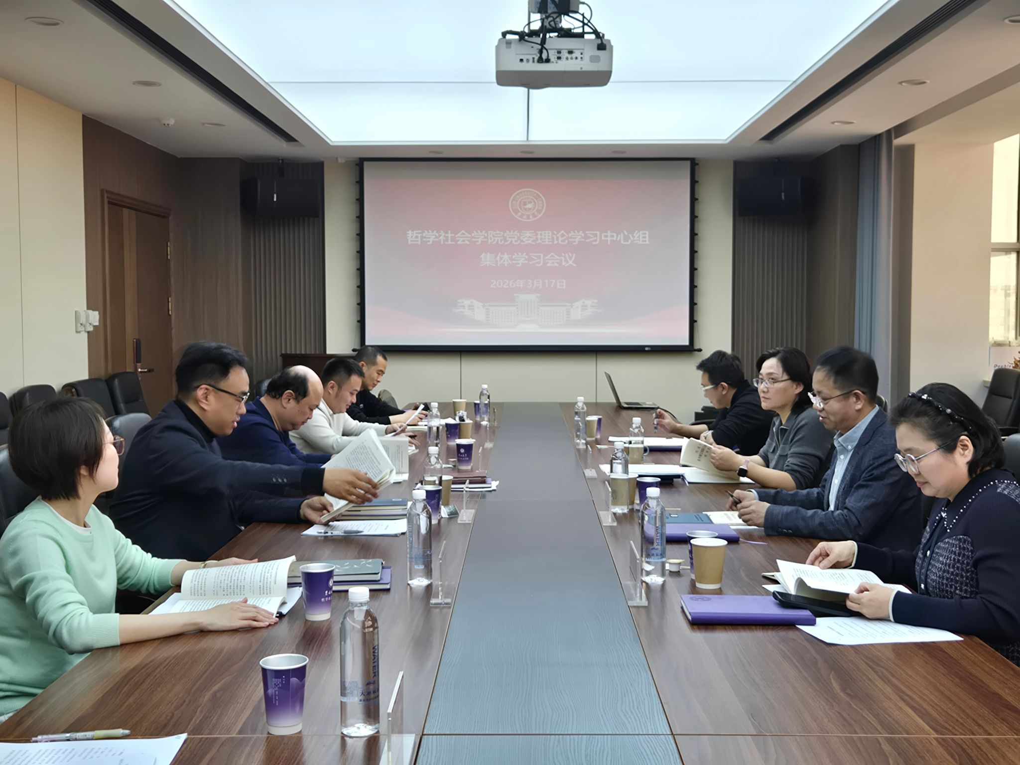 3月17日上午,哲学社会学院树立和践行正确政绩观学习教育读书班开班仪式暨党委理论学习中心组集体学习会议在东荣大厦908会议室举行。学院领导班子成员、学院党委理论学习中心组成员和党建工作联络员李丹同志参加会议。会议由学院党委书记张晓萌主持。