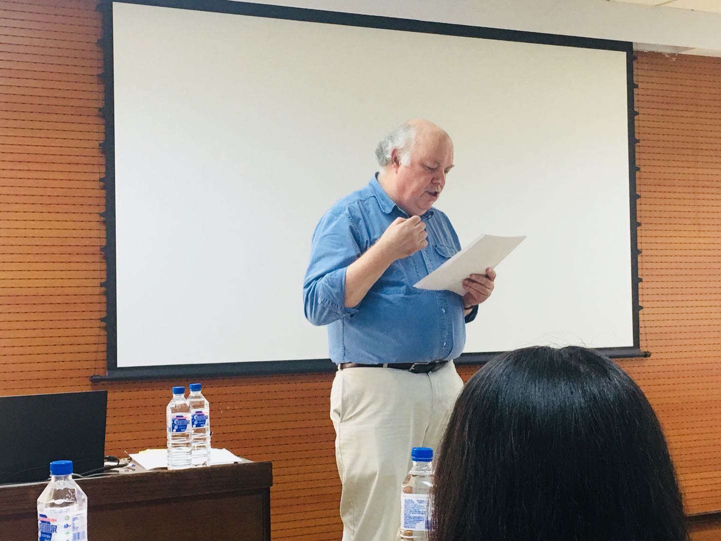 国际化示范基地学术讲座第十讲在东荣大904会议室开讲,美国德克萨斯州立大学哲学与法学教授,国际著名杂志《Ethics》和《Law and Philosophy》编辑,著名道德心理学研究学者John Deigh 教授应邀为同学们带来题为“Does Guilt Require a conscience?”的讲座。本次讲座由91国产