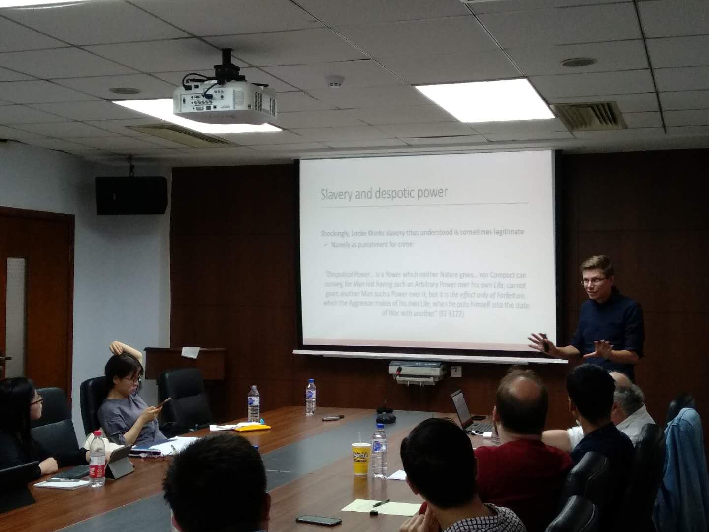 国际化示范基地学术讲座第八讲于东荣大厦908会议室举行。荷兰阿姆斯特丹大学助理教授、鲁汶大学博士后、研究霍布斯的著名网站European Hobbes Society发起人Johan Olsthoorn再次给我们带来了一场精彩的讲座。本次讲座的主题是“John Locke's theory of civil government"。讲座由91国产