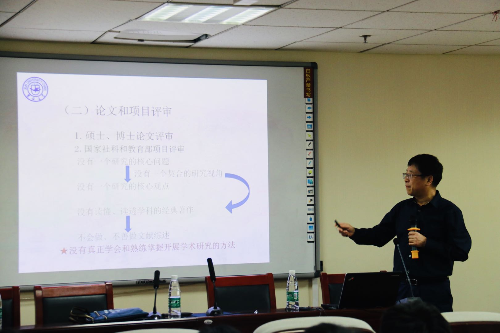 董才生教授受邀在山东大学哲学社会发展学院主办的“朱雀专家讲座”作了题为“学术研究的基础与关键”的学术报告,山东大学哲学与社会发展学院社会系系主任林聚任教授主持了本次报告。董才生教授结合学风建设与自身科研经验,指出学术研究的基础应是读懂、读透学科的经典著作。认为可以通过是否触及学科本质、是否“合逻辑和事实之理”等标准去判别是否经典著作。在读懂与读透经典著作的目的指引下,带着“框架”去读,“逐字逐句地”去读,达到“外在知识内在化”和“内在知识外在化”效果。在阅读过程中要掌握显性含义的隐性深意,要忠于文本,要对著作的每一自然段、每一节、每一章和整体内容进行概括,并在它们之间建立内在的逻辑联系,要将经典著作的思想或观点置于学术脉络中展开评价等。董才生教授进一步指出,学术研究的关键是会做、善做文献综述,这也是确保研究创新性、价值性的来源。学术理论创新,除了通过对现实的敏锐观察实现之外,还可以通过文献综述去实现。文献综述需要基于确定的论域和一定的文献搜索能力,能够“走进去”,认真研读文献,通过理论思维发现问题;能够“跳出来”,解决核心问题、构建核心观点,最后“再走进去”,以构建的核心观点去重新整理文献、述评文献。