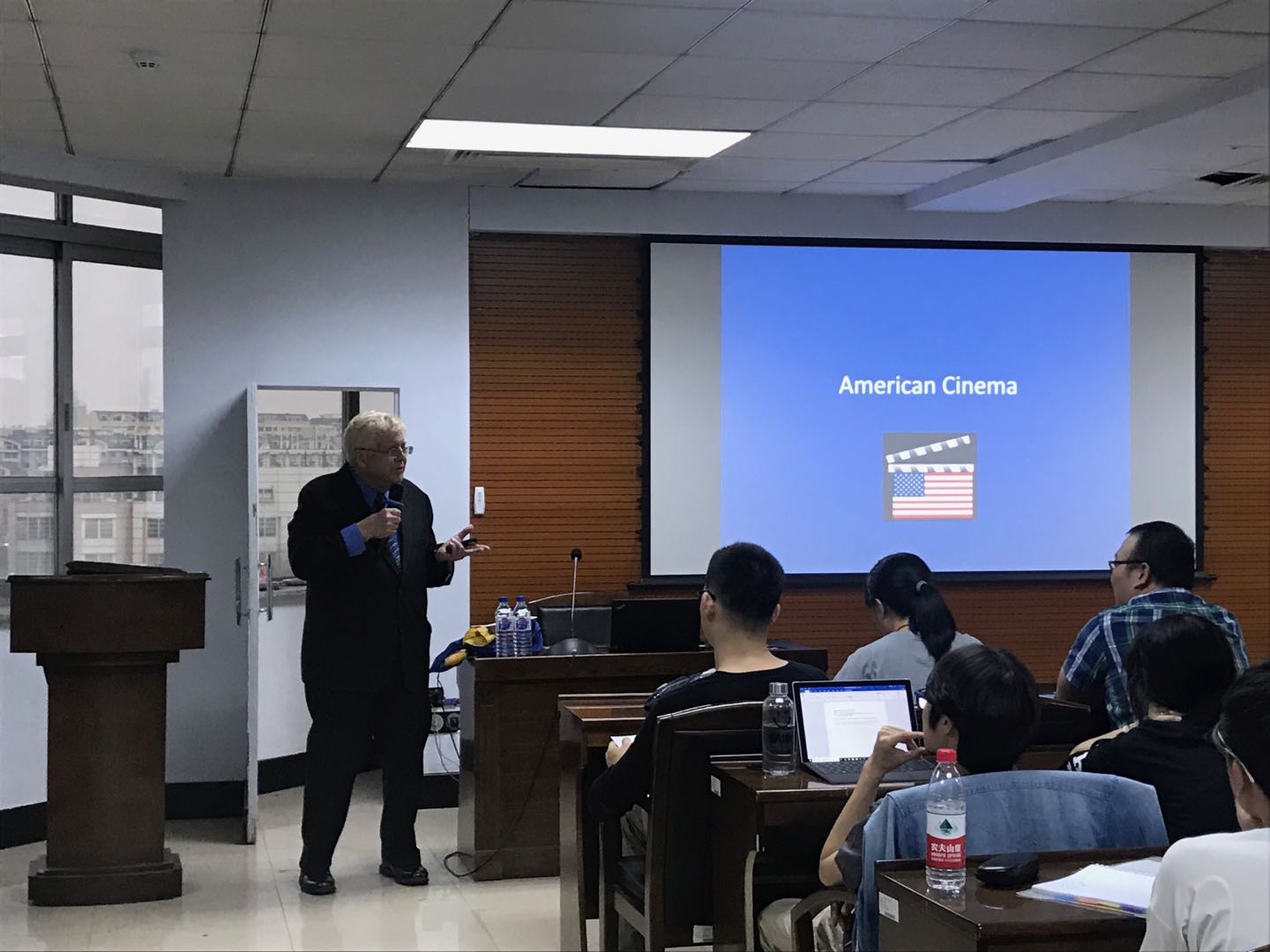 Gillespie教授从事美国本土与文化研究长达60年。他首先从电影的历史讲起,将好莱坞电影的发展分成三个阶段:The Silent Film Era(默片时代:1884-1929),Classical Hollywood Cinema(经典好莱坞电影:1927-1963),和The Contemporary Period(当代好莱坞电影:1963-至今)。Gillespie教授结合自身的经历,就每一个时期不同的经典电影展开深入浅出的分析。