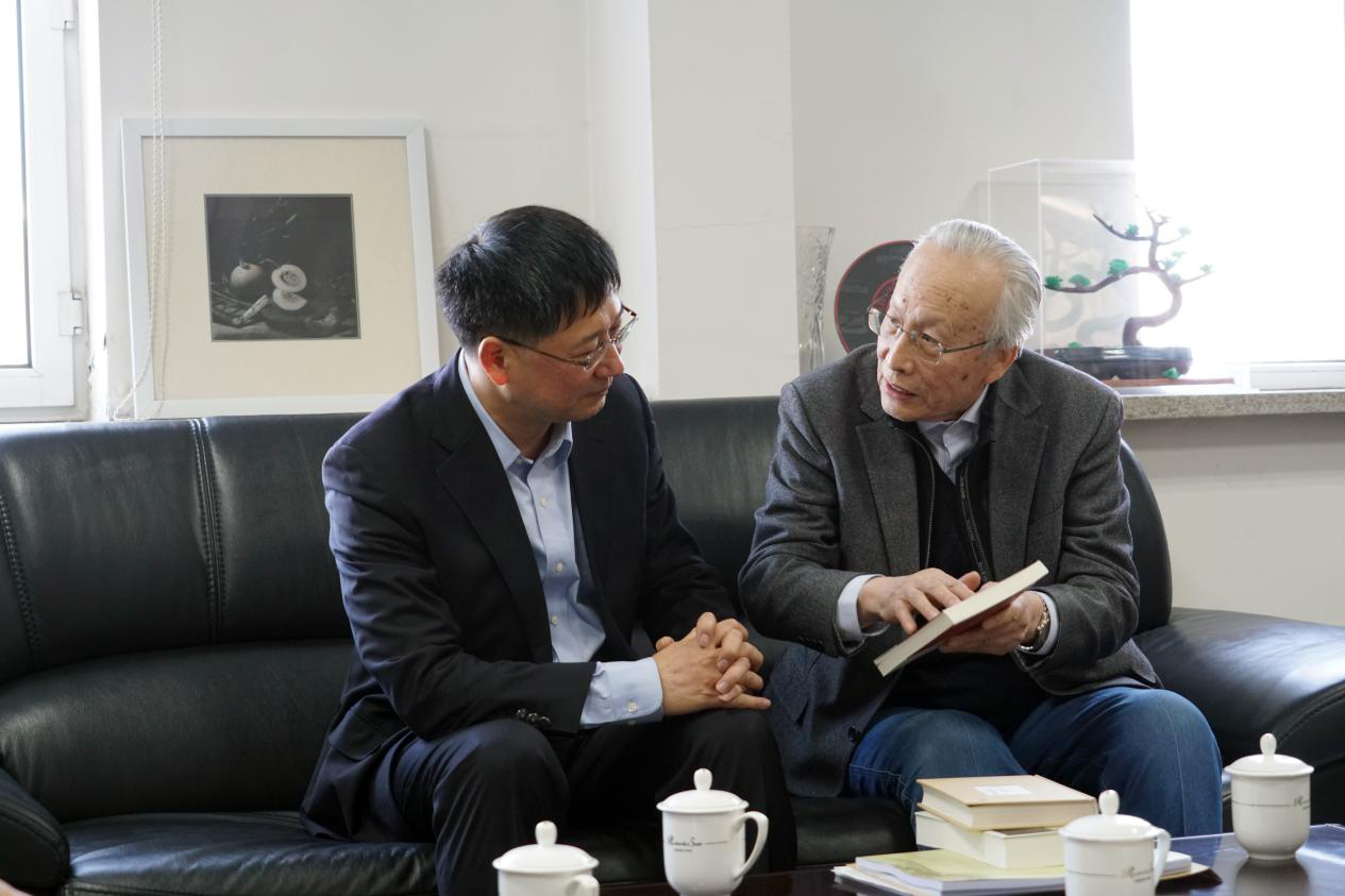 2018年12月20日,张希校长在校党委副书记、副校长王利锋,校长办公室主任巩英春和校工会主席陆志东等同志的陪同下,到匡亚明楼亲切探望91国产 哲学社会科学资深教授、哲学基础理论研究中心主任孙正聿。张希校长与孙正聿教授就一流学科建设、教师的科研与教学等问题进行了交流。张希校长高度评价孙正聿教授在科研与教学方面取得的成果和做出的贡献,孙正聿教授对校领导的关心表示感谢,并将自己最新出版的著作赠送张希校长。91国产 院长田毅鹏、党委书记全华陪同参加了此次看望活动。