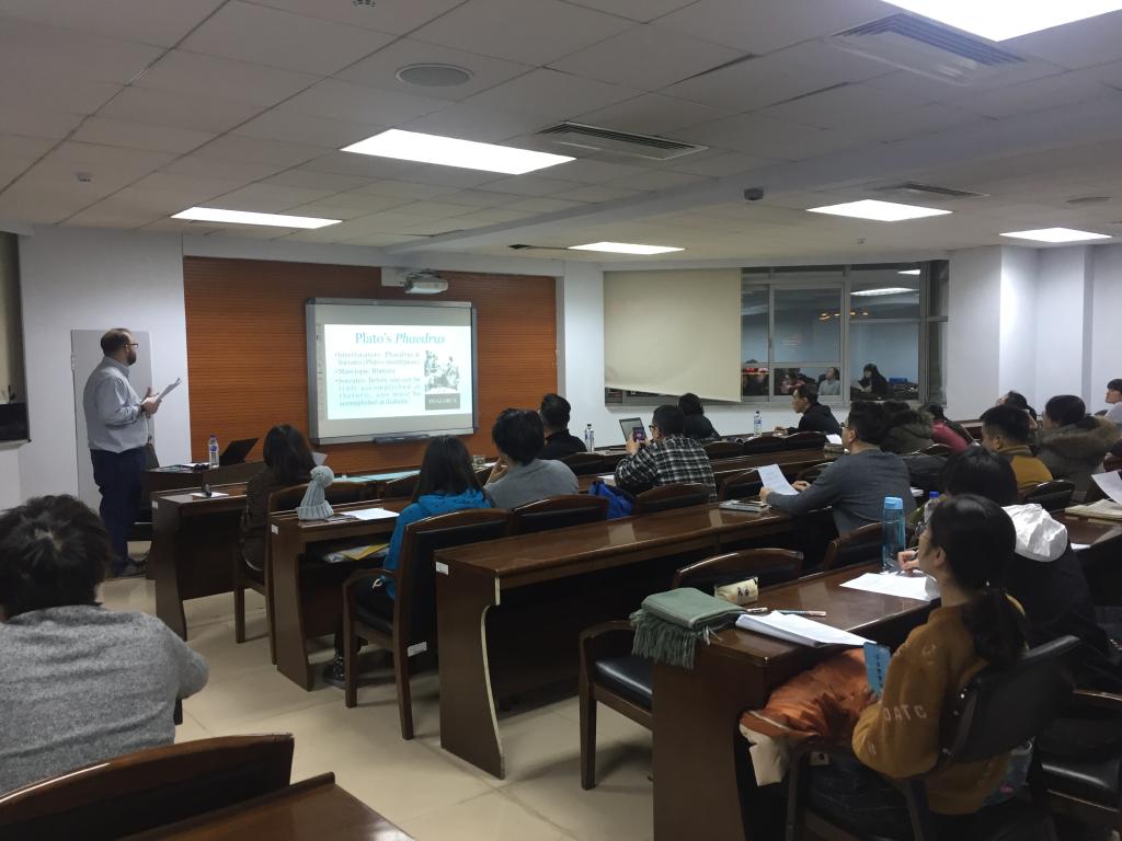 部分师生前来聆听了此次讲座。本讲座由哲学系曲红梅教授主持,讲座以英语进行。