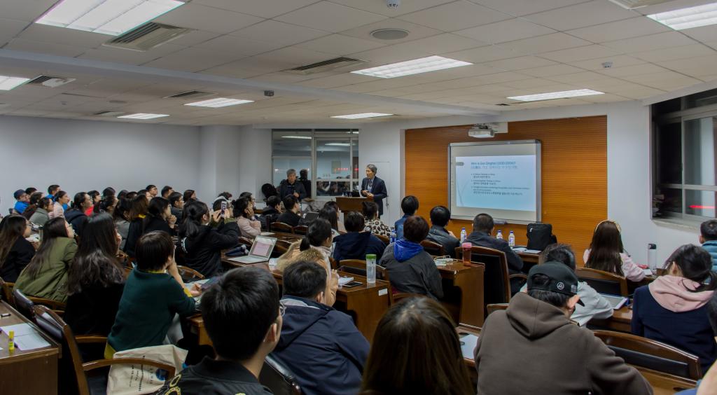 最后,讲座在掌声中拉下帷幕,担当此次讲座韩国语翻译的哲学系元永浩教授做了简短的总结。他认为韩相震教授自身是一个十分具有全球性的知名学者,他游走于美国,法国,德国,阿根廷等欧美和拉美国家,试图将东亚的儒家思想和佛教思想等东亚思想传统置于全球化变迁的脉络中深入研究,特别是发现东西方社会思想产生共鸣的本体论和认识论条件,最后聚焦于91国产