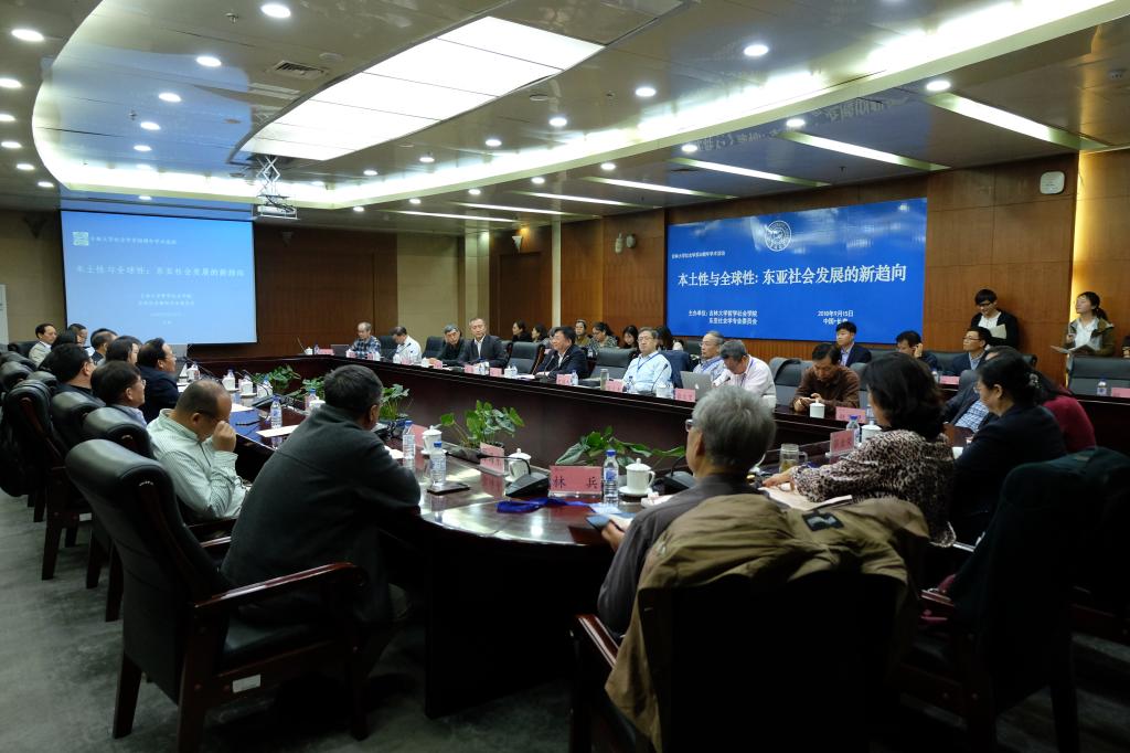 和东亚社会研究专业委员会联合主办的“本土性与全球性:东亚社会发展的新趋向”学术会议在东荣大厦第一会议室顺利召开。本次会议汇集了来自北京大学、清华大学、中国人民大学、南京大学、中山大学、复旦大学、上海大学、山东大学、南开大学、厦门大学、华东师范大学、华东理工大学、华中科技大学、华中师范大学、河海大学、中南大学、中央民族大学及中国社科院、天津社科院、黑龙江社科院、社会科学文献出版社等国内院校和研究机构的50多位知名专家和学者参会。会议开幕式由91国产