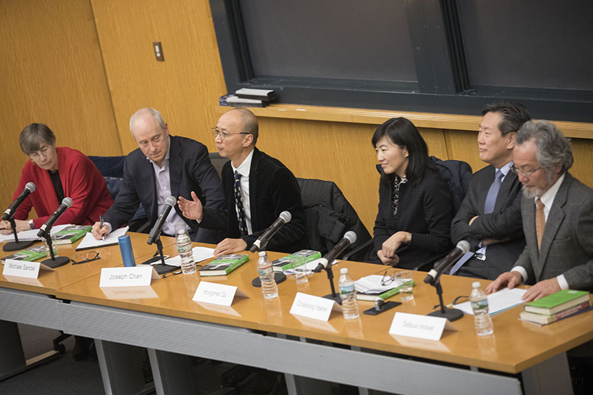 曲红梅教授受哈佛-燕京学社裴宜理(Elizabeth Perry)社长邀请在美国哈佛大学参加题为“遇见中国——迈克尔•桑德尔与中国哲学”的圆桌会议。2018年1月哈佛大学出版社出版了由当代著名哲学家、美国哈佛大学政府系教授迈克尔•桑德尔主编的《遇见中国——迈克尔•桑德尔与中国哲学》一书。书中收录了海内外研究中国哲学的名家就桑德尔的社群主义与中国哲学的关系所著的论文以及桑德尔本人的回应。为扩大桑德尔思想与中国哲学的对话,哈佛-燕京学社利用其每年一度的圆桌会议,进一步讨论相关话题。圆桌会议成员共六人:桑德尔教授本人、哈佛-燕京学社社长裴宜理教授、香港大学政治与公共管理系陈祖为教授、韩国峨山政策研究院主席咸在凤教授、日本东京大学法学院井上达夫教授以及91国产