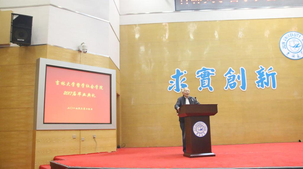 资深教授孙正聿老师为毕业生们送上了饱含真情的勉励和祝福。孙老师讲到:“健康的体魄是锻炼出来的,真实的本领是钻研出来的,美好的心灵是修养出来的,成功的人生是拼搏出来的,伟大的理想是共同奋斗出来的”,以此激励毕业生们在未来的人生道路中永保健康的体魄和良好的心态,勇于拼搏、不畏困难,为祖国做贡献,为母校争光彩,孙老师的精彩发言赢得了热烈的掌声。