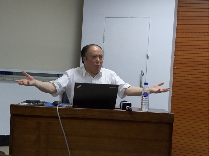 师生作报告。陈光金研究员报告的题目是“经济新常态与社会发展模式转型”。