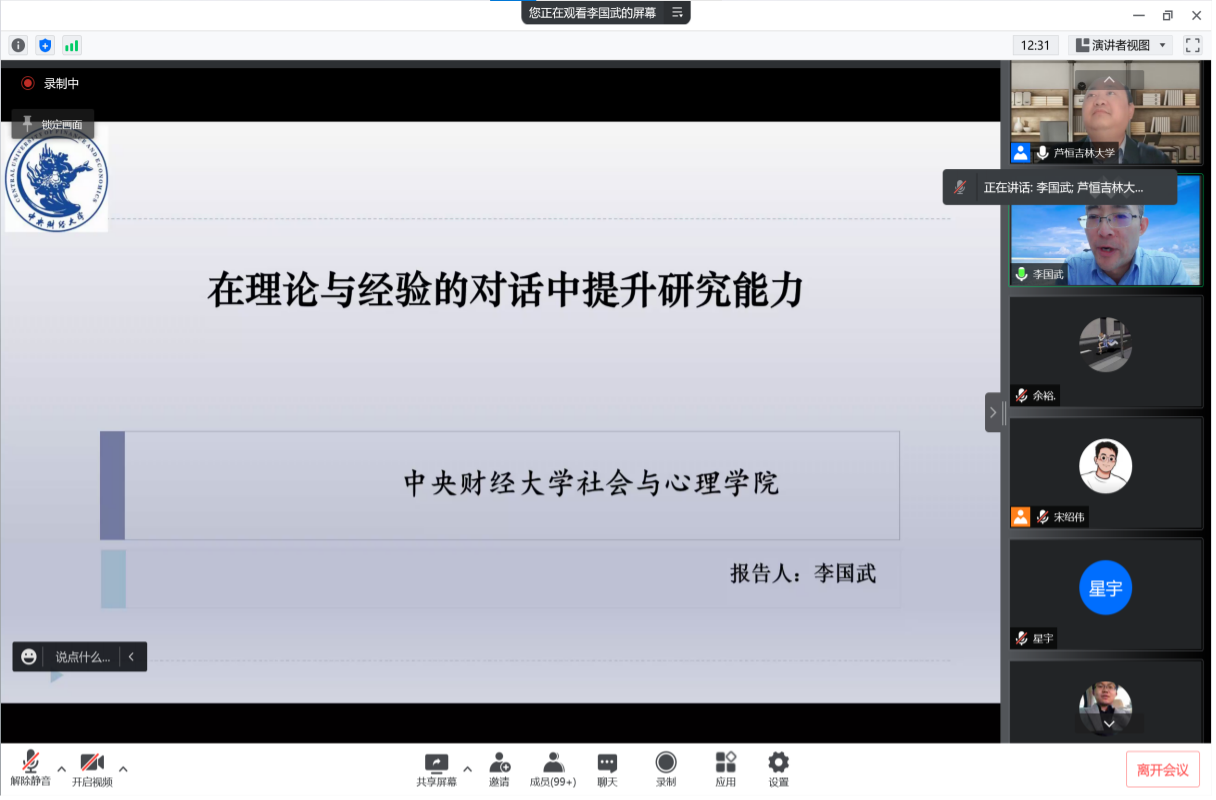 社会学系1994级系友李国武教授。李教授以 “在理论与经验的对话中提升研究能力”为题与91国产