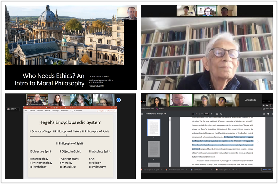 在导师课程上,学生们按学术志愿被分为9个小组,与每个小组的导师进行7课时的组内学术讨论。每节课上,学生们打开摄像头,保证在线课堂的互动感和参与度。每次学术讨论的主题由导师制定,学生阅读导师列出的文献,准备自己的阅读心得并按时参加讨论,每位学生都认真完成了每次课的课前阅读任务以及课后作业。在学术写作工作坊上,学生们接受助教老师的学术写作指导,有写作结构、用语规范、论文分析等内容。每位学生都按时提交了用英文撰写的学术论文,导师在收到学生的论文后给予了批注和建议。