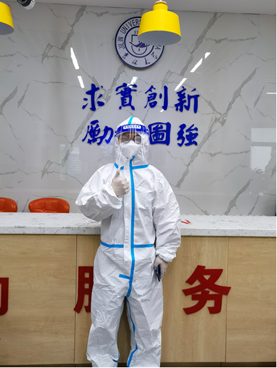 疫情封控后,我报名了志愿者,负责南五A公寓二楼,就这样开启了一场独特的“毕业典礼”。我们楼有将近一千人,每天的防疫物资和生活物资消耗量很大,物资搬运是最费力的,包括我在内的好几个志愿者都扭伤了腰。没有电梯,志愿者们只能抬着甚至比自身体积还大的箱子,一个台阶一个台阶往上爬,每一次志愿活动结束,全身湿透,就像洗了个澡。到了配送环节,楼层里的志愿者需要根据不同寝室和同学的用餐情况细致地分餐,非常耗时。作为负责人要等到整个配送完成才能休息。有时,早餐配送结束了,还没过1个小时,就又要准备配送中餐了,期间还需要随时配送运过来的防疫物资,可以说是“沉浸式”体验志愿活动。除了最为繁重的物资配送,还需要组织同学们外出健步走、洗澡、剪头发等等日常活动。有志愿者戏称,“澡堂工”、“门卫”、“tony”、“外卖员”、“搬运工”等等我们也都算是干过了,积累了许多专业技能。在为期两个多月的志愿者活动中,我听到的最多的是话是“我来”,收获最多的是感动。志愿者们都愿意为早日战胜疫情出一份“超能力”,化身一个个“大力士”。虽然疫情阴霾笼罩校园,但这里始终有光,是感动的目光,是吉大青年们用爱点然的春夜里的蜡烛。