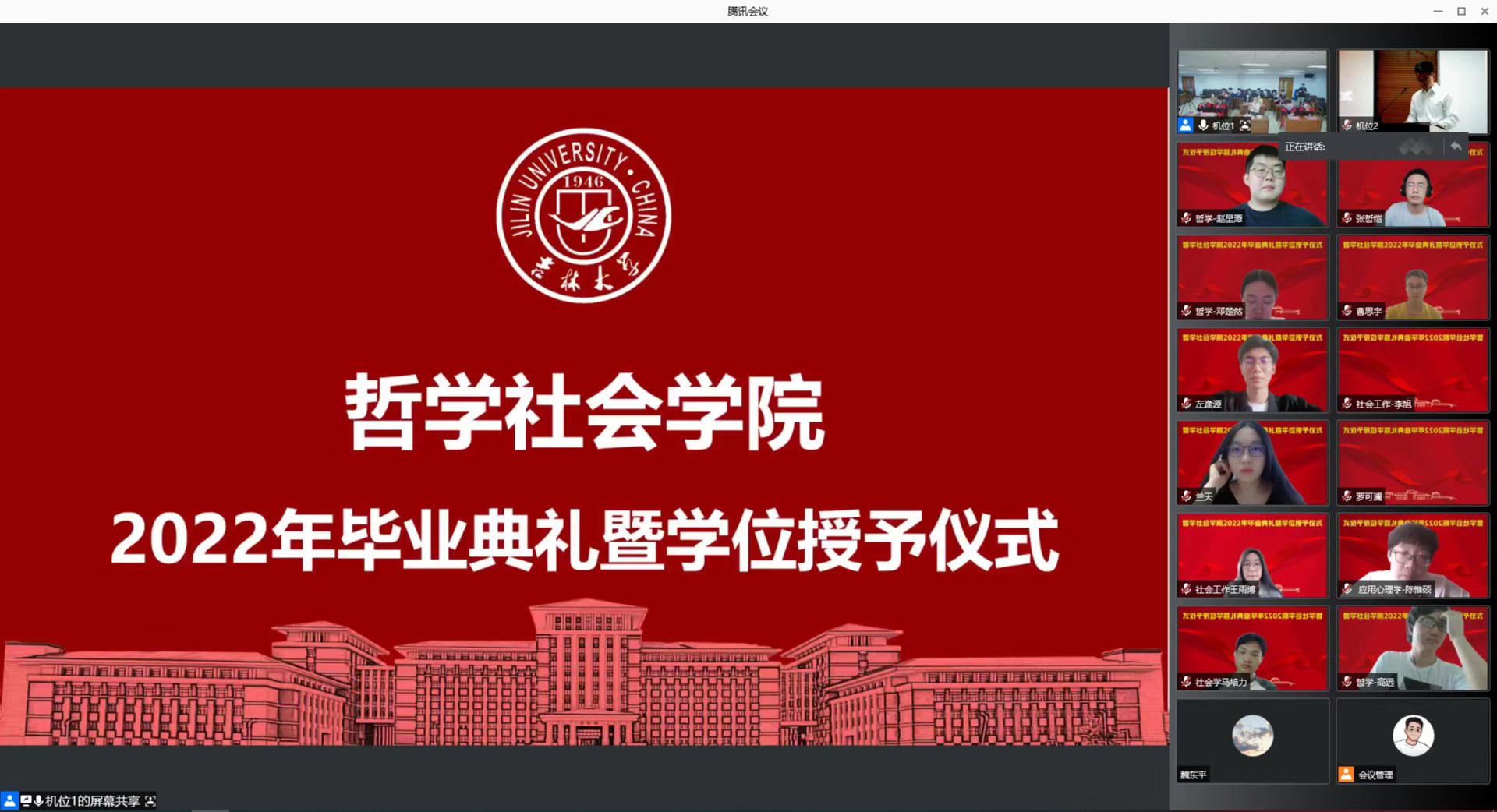 2022年毕业典礼暨学位授予仪式以线上线下相结合的方式如期举行,主会场设在东荣大厦904会议室。